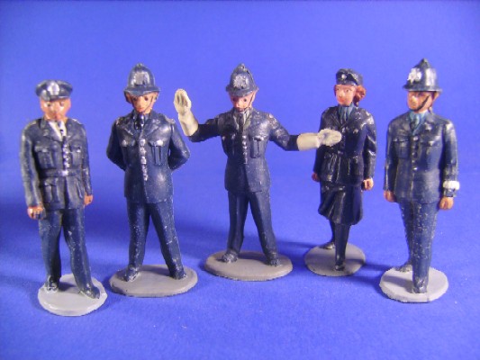 Fünf Personen bildeten die Polizei: ein Inspektor, zwei Bobbies, eine Polizistin und ein Verkehrspolizist. Die Serie kam 1955 auf den Markt. |