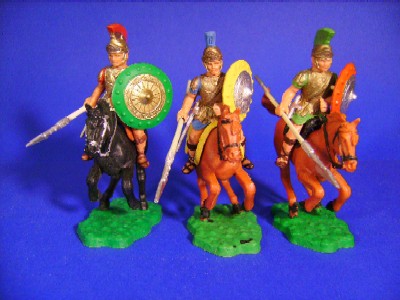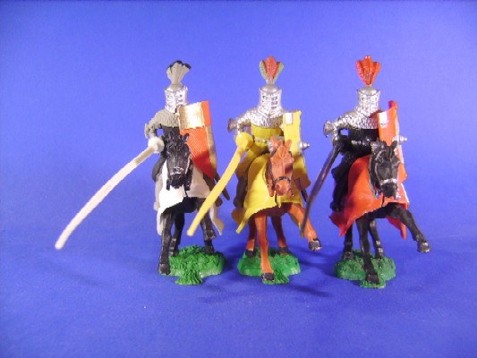 Ritter und Römer Die Ritterserie von 1955 umfasste 6 stehende Figuren und 3 Reiter. Dazu kamen drei Römerreiter. |